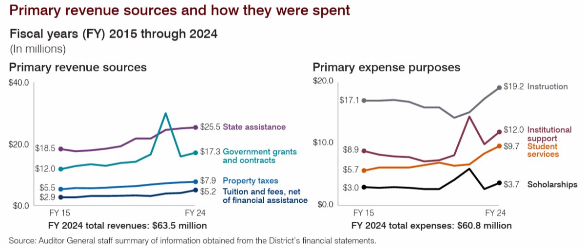 AZ Auditor General’s graphical representation of EAC’s Primary Revenue sources and associated Primary Expense purposes for fiscal year 2024. This information is can be found in the detail 2024 Financial Report.