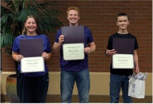 Jordan Rose was awarded first place for her essay, “Cyberbullying and Mental Health.” “AI and Humanity,” the title of the second-place essay, was written by Ethan Lauer. Third place was awarded to Samuel Guy for his essay, “Labor Exploitation of Migrant Workers in Qatar.”