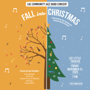 EAC’s holiday celebrations begin Friday, Nov. 21, at 7 p.m. in the Lee Little Theater the Community Jazz Band’s upbeat, “Fall Into Christmas,” directed by Dr. Gary Sorensen, EAC’s dean of students.